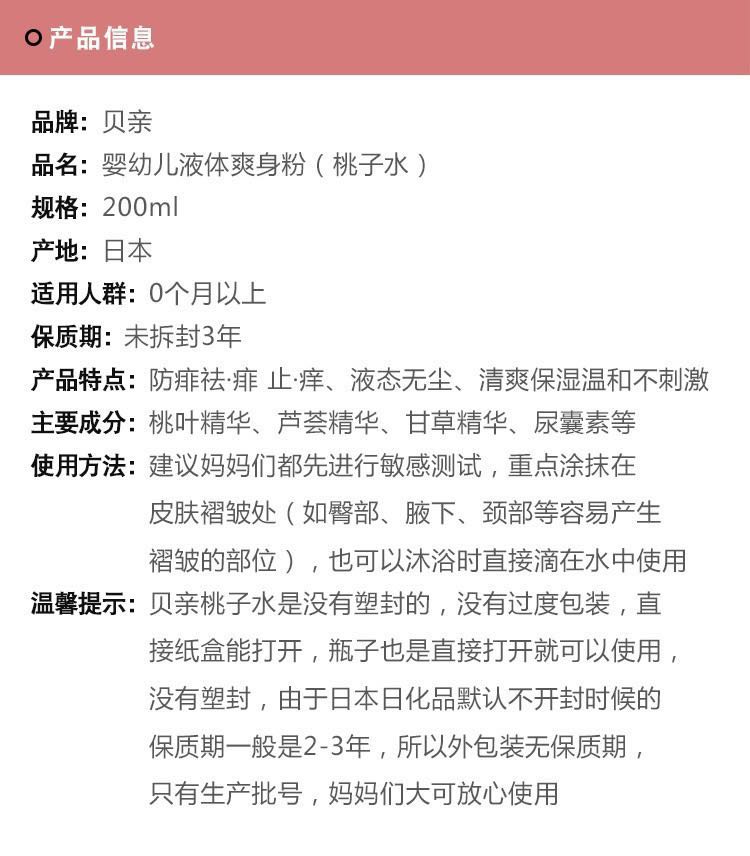 日本贝亲桃子水婴儿桃叶精华液体爽身粉新生儿宝宝祛痱子水祛痱露